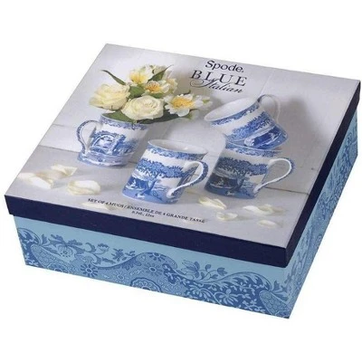 Refresh your drinkware with the elegant simplicity of the Spode Blue Italian 12oz Mug Set of 4, a beautiful representation of decorative porcelain drinkware steeped in tradition. Each mug features a finely detailed scenic motif framed by a scrollwork border—bringing artistry and visual charm to your morning coffee or afternoon tea. The deep blue pattern contrasts gracefully against the white porcelain, highlighting the craftsmanship in every piece.Designed for both style and utility, these small ceramic mugs hold 12oz each—perfect for tea, espresso, or a modest pour of coffee. The glazed finish offers durability and protection, while the microwave- and dishwasher-safe design ensures everyday convenience.Whether arranged on a brunch table, styled in open shelving, or gifted to a fellow tea enthusiast, this ornamental mug set delivers timeless design and functional ease. Ideal for collectors or casual hosts alike, these mugs elevate your drink moments with artistry, warmth, and classic presentation.