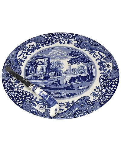 - The most delightful set to gift a cheese lover or to bring out at the end of a meal or during a cheese and wine night. This Blue Italian cheese plate is made from Spode’s finest porcelain and is accompanied with a beautiful, complementary cheese knife which features a porcelain handle and stainless steel knife. Cheese has never been so stylish. Plate: Diameter 11ines / 28cm Plate and handle are made from the finest porcelain Knife is made from durable stainless steel Designed in Spode’s studio in England.