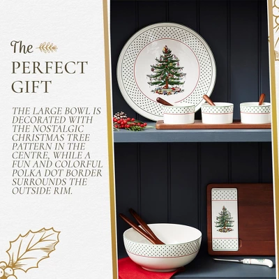 Loved for its nostalgia and warm recollections of Christmases past, Christmas Tree is one of the world’s best known holiday designs since its introduction in 1938. Each season sees wonderful new introductions for collectors both old and new. Christmas Tree adds a distinctive charm to every table — celebrating traditions and creating memories. Elevate your holiday gatherings with the Spode Christmas Tree Serving Tray featuring a delightful Christmas Tree Design. These charming trays are perfect for serving appetizers, canapes, and small desserts, adding a touch of festive spirit to your holiday table. The iconic Spode Christmas Tree design makes these trays a standout addition to your seasonal tableware. These versatile tray are not just for the holiday season. Their elegant design makes them suitable for various occasions, from festive gatherings to everyday use. Serve appetizers, desserts, or small bites at any celebration, and add a touch of sophistication to your table setting. The Spode Christmas Tree Serving Bowl makes a thoughtful and appreciated gift for friends and family. Its beautiful design and high-quality construction make it a perfect present for holiday occasions, housewarmings, or any special event. Share the joy of holiday dining with these charming and festive tray.