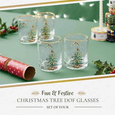 A holiday favorite since its debut in 1938, the Spode Christmas Tree pattern is the epitome of festive elegance and remains the most cherished and widely collected holiday design. Featuring a traditional evergreen adorned with vintage-inspired ornaments and encircled by charming decorations, this pattern evokes a warm, nostalgic Christmas atmosphere that families treasure each year. The iconic tree, decorated with care and surrounded by brightly wrapped presents, brings a whimsical, folksy charm to every piece.Perfect for cozy winter nights or festive gatherings, the Spode Christmas Tree Glass Collection offers a luxurious touch to your favorite cocktail, creating an inviting setting for reconnecting with loved ones. These elegant gold-rimmed glasses are also an ideal choice for serving milk alongside Christmas cookies, making them a delightful addition to your holiday drinkware collection. Pair these glasses with other items from the collection to enhance your seasonal dining experience and create memories that will be cherished. Celebrate the season with the Spode Christmas Tree 14oz Double Old Fashioned Glasses, featuring gold-rimmed rims and a luxury rustic Christmas design, perfect for serving whiskey at premium holiday gatherings and cozy celebrations.