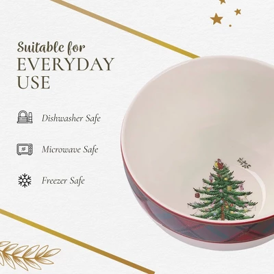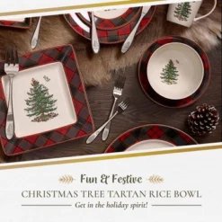 - Classic Spode Craftsmanship: Crafted from fine ceramic, these bowls reflect Spode’s dedication to quality and tradition. The iconic Christmas Tree design, accented by forest green banding and a tartan pattern, adds a distinctive charm to your holiday plates and bowls, enhancing the festive atmosphere of your holiday meals.