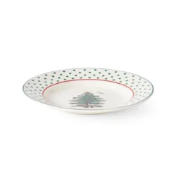 Bring festive charm to your holiday gatherings with the Spode Christmas Tree Polka Dot Tidbit Plates, Set of 4. Measuring 6 inches each, these round appetizer plates are perfect for serving snacks, desserts, and small bites during holiday celebrations. Featuring Spode’s iconic Christmas tree pattern in the center, adorned with colorful presents and mistletoe, the plates are framed by a playful polka dot border that adds a modern twist to this classic design. Whether you’re hosting a family dinner or a casual cocktail party, these holiday-themed plates are the ideal size for small appetizers, desserts, and snacks. Crafted from durable porcelain, these Christmas plates are built to withstand frequent use without losing their beauty. Unlike plastic, they won’t absorb odors or discolor over time, making them a reliable and stylish choice for holiday entertaining. They’re also incredibly practical—safe for use in the microwave, dishwasher, and freezer—offering both convenience and functionality during the busy holiday season.Not only are these plates functional, but they also make a fantastic gift. The Spode Christmas Tree Polka Dot Plate Set is a thoughtful and festive present for friends and family who enjoy holiday entertaining. Spode’s Christmas Tree pattern has been a collector’s favorite for decades, with each year introducing new and exciting pieces. These polka dot appetizer plates are the perfect addition for those looking to expand their collection or start a new holiday tradition.