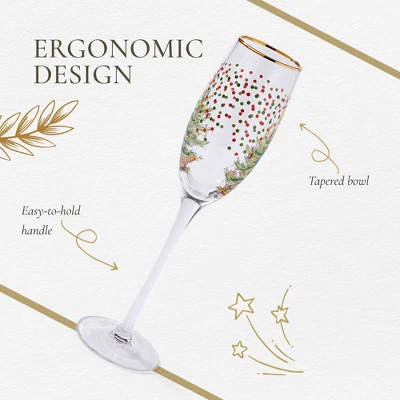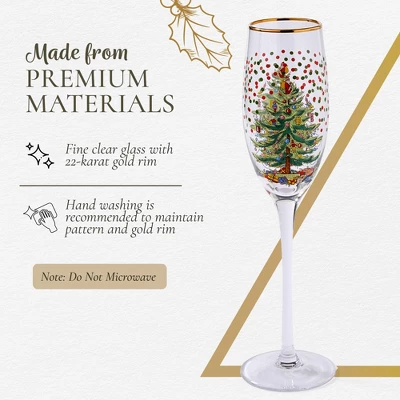 - Holiday Champagne Glasses: Enhance your festive celebrations with our 8.45-ounce holiday-themed wineglasses, featuring a luxurious 22-carat gold rim. Perfect for enjoying your favorite wines, cocktails, and beverages, this decorative glassware set adds a touch of sophistication to Christmas dinners, holiday parties, and seasonal gatherings.