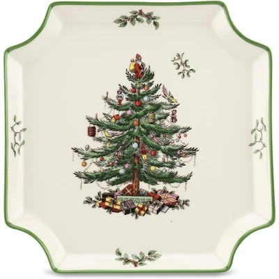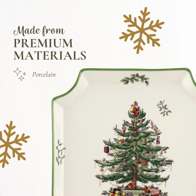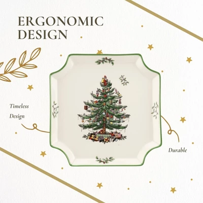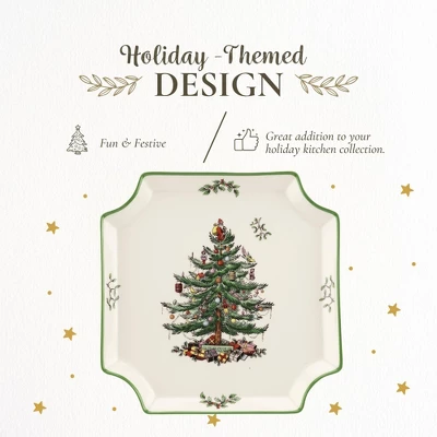 - Festive Christmas Tree Design: The Spode Christmas Tree Canape Plate is an 8-inch holiday serving platter featuring a two-tone red border enhances the festive feel, making it an elegant addition to any Christmas table setting.