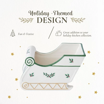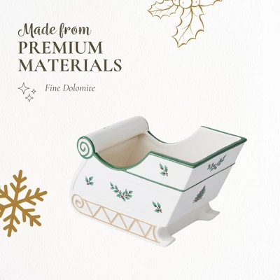 Add festive charm to your holiday decor with the Spode Christmas Tree Figural Sleigh, a versatile and decorative addition to your home. At 7.5 inches, this sleigh brings a nostalgic, holiday atmosphere to your Christmas table or mantel, featuring the beloved Spode Christmas tree design and holly sprigs. Introduced in 1938, the Christmas tree design has become a symbol of holiday tradition, and this sleigh continues to celebrate that legacy.This decorative sleigh isn’t just for display. Use it as functional holiday serveware by filling it with candy, chocolates, cookies, or snacks for guests during holiday gatherings. Crafted from durable dolomite, this sleigh is built to be both decorative and practical. Its dishwasher-safe, microwave-safe, and freezer-safe features ensure that it fits seamlessly into your holiday entertaining, offering ease of use without sacrificing style.Looking for a thoughtful gift? The Spode Christmas Tree Figural Sleigh is a wonderful choice for housewarming parties, weddings, or holiday gifts. Its combination of decorative beauty and functional serveware ensures it will be well-loved and appreciated. This sleigh also complements other items in the Spode Christmas Tree collection, making it a valuable addition to any home. Celebrate the holiday season with this charming sleigh and enhance your festive decor. Whether used as a decorative display or a functional piece for your holiday table, it will add warmth and joy to your seasonal celebrations. Create cherished memories and enjoy the beauty of the season with the Spode Christmas Tree Figural Sleigh.