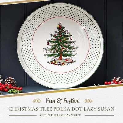 Spode Christmas Tree Lazy Susan – Polka Dot, Non Skid 360 Degree Rotation, Holiday Space Saver For Kitchen, Cabinet, Pantry
