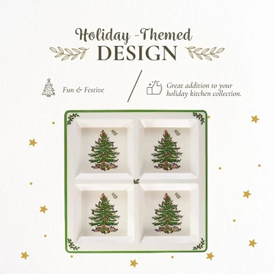 - Versatile & Decorative: The 4-section layout of this tray allows you to separate different snacks, nuts, candies, condiments, or appetizers with ease. The traditional Spode Christmas Tree design enhances your Festive Tableware collection, serving as both a functional piece and a decorative centerpiece.