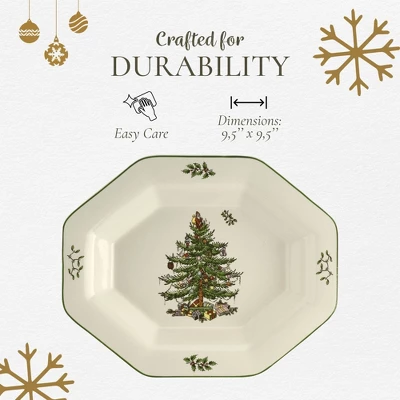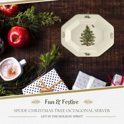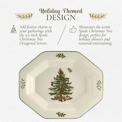 - Festive Holiday Charm: Elevate your seasonal gatherings with the Spode Christmas Tree Octagonal Server. This 9.5-inch tray is ideal for serving a variety of dishes, from roasted chicken to fresh vegetables, bringing a festive touch to your Christmas table settings.