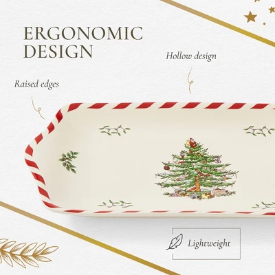 - Iconic Holiday Design with a Twist: The Spode Christmas Tree Peppermint Dessert Tray features the world-renowned Christmas Tree pattern, cherished since 1938, now with a fresh peppermint band. This tray brings festive charm and appeal to your holiday table, making it a highlight of your gatherings.