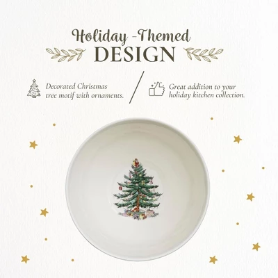 Spode’s Christmas Tree Polka Dot Rice Bowl evokes a sweet nostalgia and warm recollections of Christmases past. This Christmas dinnerware is an integral part of seasonal celebrations that the whole family will cherish! Measuring 6 inches, the Christmas tree bowl is suitable for all your favorite rice meals, soups, desserts, side dishes, and more! A holiday favorite since its introduction in 1938, Spode’s Christmas Tree pattern is their most well known and widely collected holiday pattern. The Christmas Tree Polka Dot Collection features playful polka dots surrounding the iconic Spode Christmas Tree. A whimsical collection to add cheer to the holidays. For everything from rice to ice cream, the playful polka dot confetti design of the Christmas Tree Polka Dot Rice Bowl pairs delightfully with the Christmas Tree collection. For collecting fun, Spode adds new accessories to the pattern every year, allowing a cherished holiday tradition to grow with time. Match any piece to other items in the collection for seasonal dining merriment. Made from durable materials, our microwave safe bowls are safe for everyday use. Our ice cream bowls are crafted from fine bone china that are durable and solidly-built. Thoughtfully designed, these dessert bowls are microwave, freezer, and dishwasher safe. Our Christmas oatmeal bowl will also make an amazing gift for your friends and family. With a fun and festive design, anyone will easily appreciate these colorful and decorative holiday oatmeal bowls!