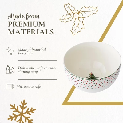 - Premium Construction – Made from fine bone china, these cereal bowls are durable and made to last. Unlike plastic, our holiday bowls do not discolor or absorb smell. They’re also dishwasher, microwave, and freezer safe, making them suitable for everyday use and special occasions alike.