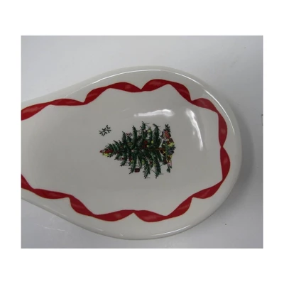 - Holiday Design with Gold Accents: The Spode Christmas Tree Ribbons Spoon Rest brings festive cheer to your kitchen. Featuring the classic Christmas tree design with 22K gold accents, it adds seasonal elegance to your kitchen countertop and dining décor.