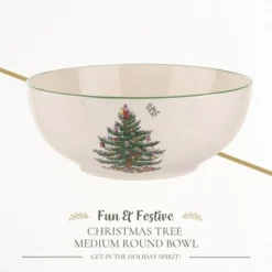 - Captivating Christmas Charm: The Spode Christmas Tree Medium Round Bowl, measuring 8.9 inches, exudes the enchantment of yuletide nostalgia. Its beloved holiday design, tracing back to 1938, imparts a sense of tradition and joy to every table, allowing you to celebrate the season’s spirit in style.