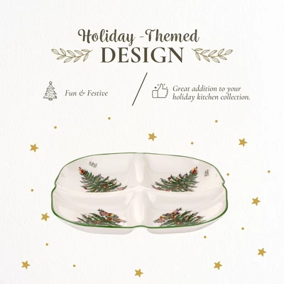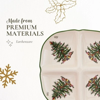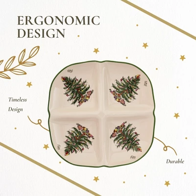 - Classic Holiday Design: Introduced in 2016, the Spode Christmas Tree Sculpted 4 Section Tray features the beloved green-banded Christmas tree design that has been a holiday tradition since 1938. This Festive Tableware piece brings elegance to your seasonal gatherings, enhancing your holiday table.