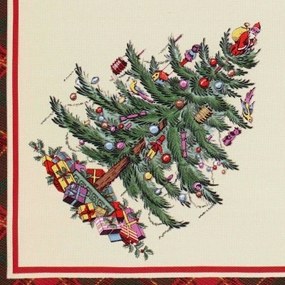 The Spode® Christmas Tree Tartan Set of Four 120″ x 20″ Napkins features the iconic Christmas tree with the tartan plaid border at the bottom on an ivory ground. Printed on 100% polyester for easy care. Coordinating tablecloths, runners, placemats and kitchen towels available.