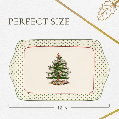 - Beloved Christmas Tradition: The Spode Christmas Tree Collection has been a cherished part of holiday celebrations since 1938, bringing warmth and nostalgia to every gathering. This 12-inch dessert tray continues that tradition, adding festive charm to your holiday table settings.