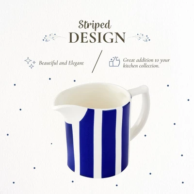 Enhance your coffee corner, brunch setup, or tabletop presentation with the Spode Steccato Milk Jug, a striking 10oz drink pitcher that effortlessly bridges function and flair. Crafted from durable earthenware, this small beverage pitcher is designed to serve a variety of needs—use it as a coffee accessory to pour creamer with your morning brew, as a chic salad dressing pitcher during mealtime, or as a quaint jug for juice during breakfast.Its signature detail lies in the bold cobalt blue stripes that delicately frame the rim, drawing from a palette that feels both modern and timeless. Compact in size but rich in personality, the jug complements any coffee station organizer, brunch setup, or dinnerware collection. The thoughtfully crafted handle and spout allow for steady, spill-free pouring—whether you’re dressing a salad or topping off a cappuccino.Perfect for those who appreciate detail in their coffee bar essentials or who enjoy hosting with unique tabletop pitchers, this jug blends visual interest with everyday utility. This pitcher is dishwasher safe and microwave safe. Whether used as a creamer pitcher, a pourer for sauces, or a unique vase alternative for fresh herbs, it’s an indispensable staple for stylish and intentional living.