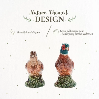 - Rustic Tabletop Appeal: Add countryside charm with pheasant salt and pepper shakers, shaped as a male and female bird nestled in greenery for your Thanksgiving or fall tablescape.